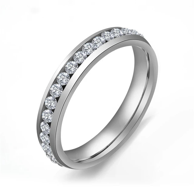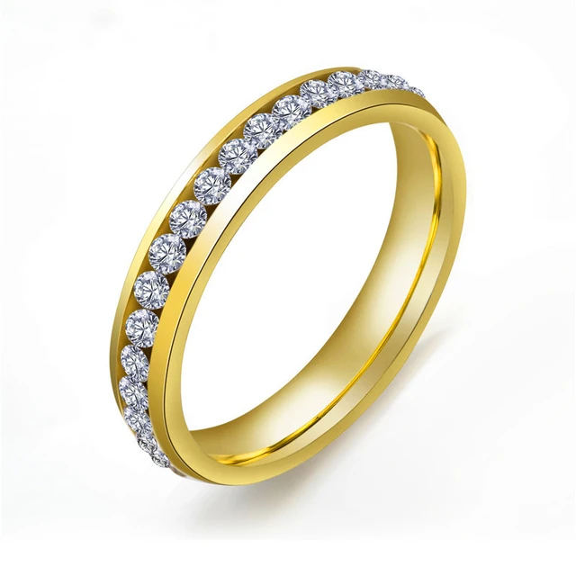SHOUMAN 4mm Classic Luxury Crystal Inlay Stainless Steel Gold Rings for Women Girl Wedding Band Charm Party Gift